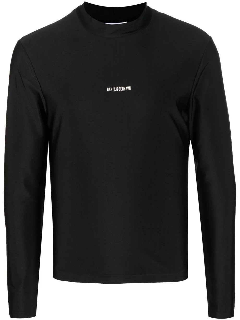 logo-print T-shirt black/white logo print at the chest crew neck long sleeves straight hem Imported Composition Polyester 90%, Elastane 10% SIZE & FIT Model measurements Height 6 ft 2 in(1.88 m) Bust/Chest 36.22 in(92 cm) Hips 36.61 in(93 cm) Waist 29.52 in(75 cm) Washing instructions Machine Wash