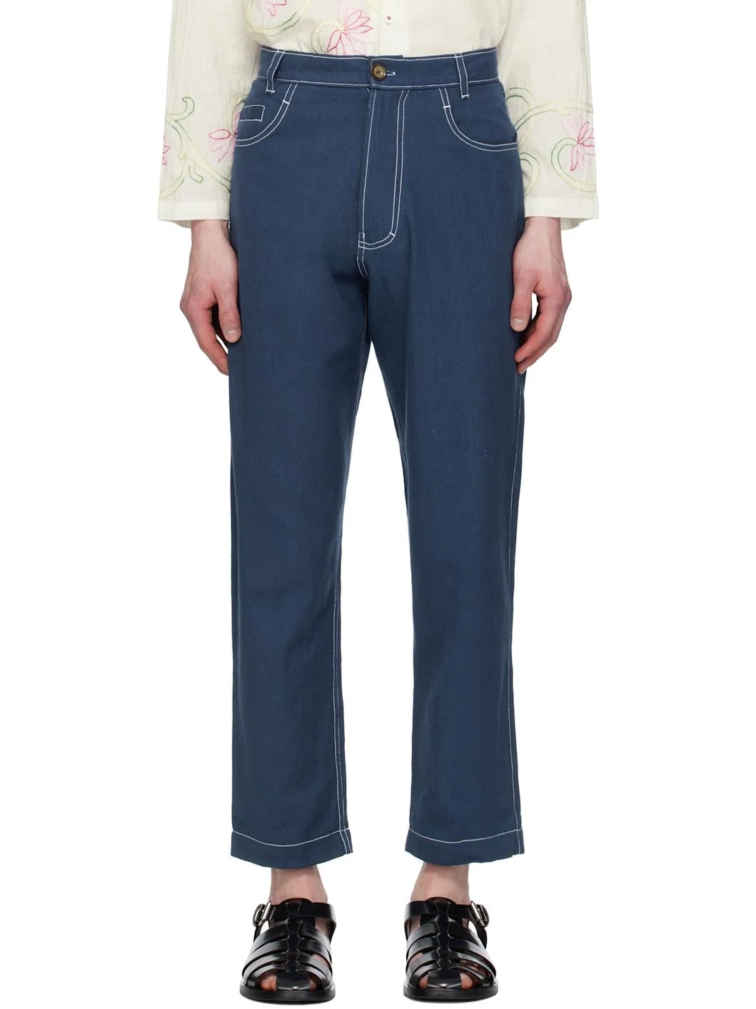 Hand-woven cotton hopsack trousers. · Belt loops · Five-pocket styling · Zip fly · Contrast stitching in white Supplier color: Indigo 100% cotton. Made in India 251245M186001