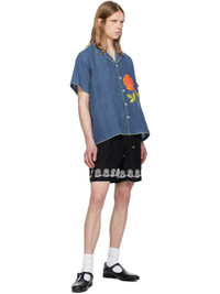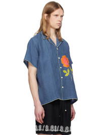 Hand-spun and hand-woven linen hopsack shirt. Blanket stitching throughout. · Natural-dyed · Open spread collar · Button closure · Floral applique at front Supplier color: Indigo 100% linen. Made in India 251245M192023