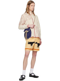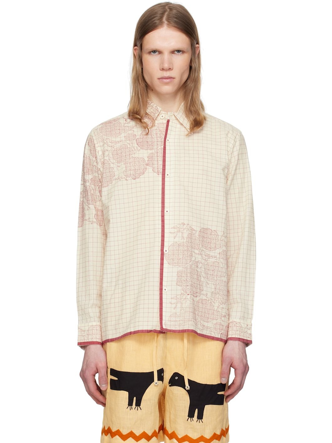 Hand-woven and hand-spun plain-woven cotton shirt. Check pattern and floral graphics printed throughout. - Spread collar - Button closure - Striped placket, hem, and cuffs - Pleat at buttoned barrel cuffs Supplier color: Off white