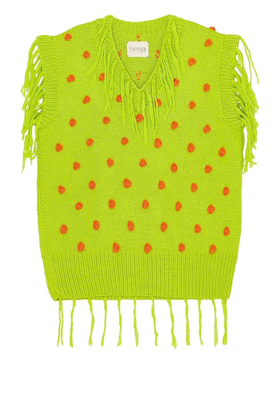 Details - 100% wool - Hand knit in India - Dry clean only - Embroidered polka dots - Crochet fabric with fringe trim - Our Style No. HAGX-MO8 - Manufacturer Style No. S2468