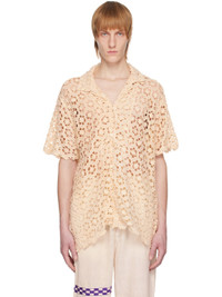 Handcrafted cotton lace shirt. · Open spread collar · Button closure Available exclusively at SSENSE. Supplier color: White 100% cotton. Made in India 231245M192035