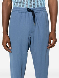 Comfort tapered trousers Highlights - Cerulean blue - Two side slash pockets - Full-length - Rear welt pocket - Tapered leg - Front zip fly fastening - Elasticated drawstring waistband Made in Italy Composition Viscose 57%, Polyamide 43% SIZE & FIT Model measurements Height 6 ft 2 in(1.88 m) Bust/Chest 36.61 in(93 cm) Hips 35.82 in(91 cm) Waist 27.95 in(71 cm) FittingInformation Designed for a tapered leg, offering a loose unrestricted fit over the leg with a closer fit towards the ankle The elasticated waist allows for a comfortable fit Made from a midweight non-stretch fabric This piece fits true to size – take your usual size