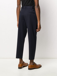 cropped tapered leg trousers Navy cotton cropped tapered leg trousers from Harris Wharf London featuring a high waist, a button and zip fly, a waistband with belt loops, side pockets, back pockets and a cropped length. POSITIVELY CONSCIOUS: Harris Wharf London scores 3 out 5 by independent ethical brand rating agency Good On You. Its products are made to order and manufactures locally to reduce its carbon footprint. It does not use fur, leather, down, exotic animal skin or angora. Made in Italy Composition Lining: Cotton 100% Outer: Viscose 56%, Polyamide 36%, Spandex/Elastane 8% SIZE & FIT Model measurements Height 6 ft 2 in(1.88 m) Bust/Chest 36.61 in(93 cm) Hips 35.82 in(91 cm) Waist 27.95 in(71 cm) FittingInformation This piece fits true to size. We recommend you get your regular size Designed for a slim fit at the waist and loose over the leg Made with a mid-weight stretch fabric Washing instructions Dry Clean Only