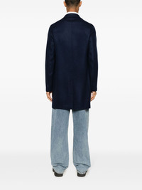 felted single-breasted coat Highlights - Navy blue - Virgin wool-cashmere blend - Felted finish - Inside-out effect seams - Notched lapels - Front button fastening - Long sleeves - Faux chest welt pocket - Two side welt pockets - Internal button-fastening patch pockets - Central rear vent - Straight hem - Mid-length Made in Italy Composition Virgin Wool 90%, Cashmere 10% SIZE & FIT Model measurements Height 6 ft 2 in(1.87 m) Bust/Chest 38.18 in(97 cm) Hips 36.61 in(93 cm) Waist 29.13 in(74 cm) FittingInformation Designed for a slim fit, offering a comfortable fit that sits just away from the body Made from a midweight non-stretch fabric, this piece offers minimal elasticity when worn This piece fits true to size – take your usual size Washing instructions Dry Clean Only