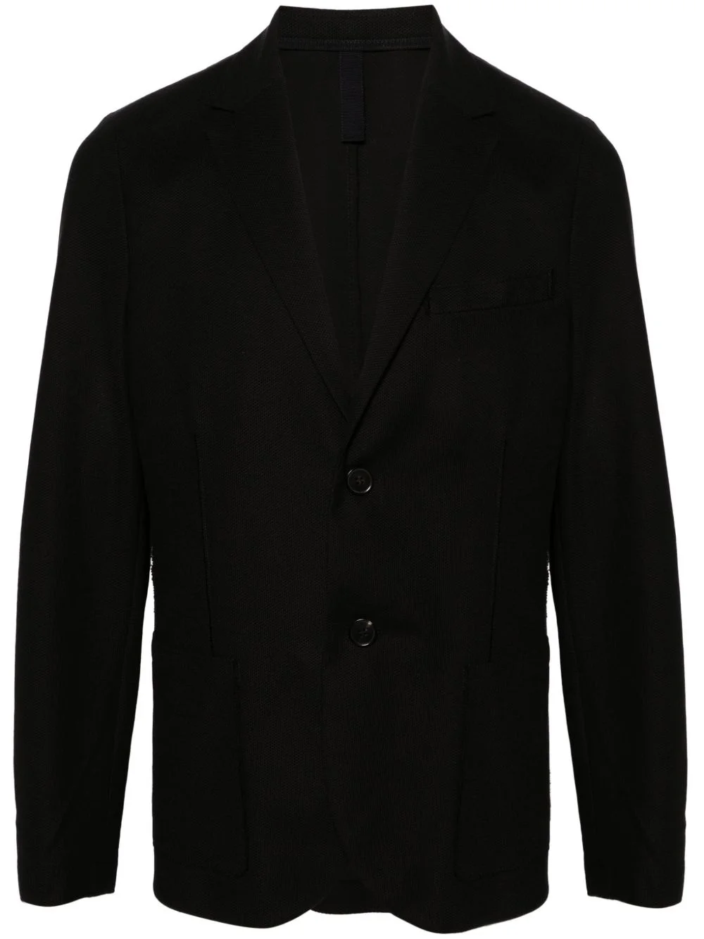 notched-lapels single-breasted blazer Highlights - Black - Cotton blend - Honeycomb knit - Dart detailing - Frayed detailing - Notched lapels - Front button fastening - Long sleeves - Chest welt pocket - Two front patch pockets - Italian rear vents - Straight hem - Unlined Made in Italy Composition Cotton 82%, Polyamide 14%, Spandex/Elastane 4% SIZE & FIT Model measurements Height 6 ft 1 in(1.86 m) Bust/Chest 37.4 in(95 cm) Hips 36.22 in(92 cm) Waist 29.52 in(75 cm) FittingInformation Designed for a slim fit, offering a comfortable fit that sits just away from the body Made from a midweight non-stretch fabric, this piece offers minimal elasticity when worn This piece fits true to size – take your usual size