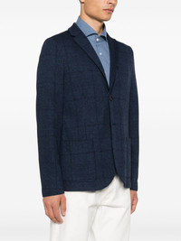 Prince of Wales-pattern blazer Highlights - Navy blue - Wool-cotton blend - Prince of wales check pattern - Front button fastening - Notched lapels - Chest welt pocket - Long sleeves - Two front patch pockets - Unlined - Straight hem Made in Italy Composition Wool 51%, Cotton 49% SIZE & FIT Model measurements Height 6 ft 1 in(1.85 m) Bust/Chest 35.82 in(91 cm) Hips 37.79 in(96 cm) Waist 29.13 in(74 cm) FittingInformation Designed for a slim fit, offering a comfortable fit that sits just away from the body Made from a midweight non-stretch fabric
