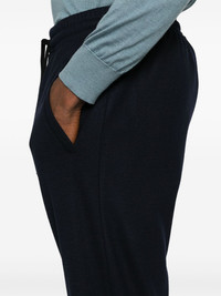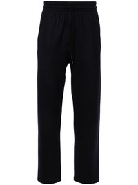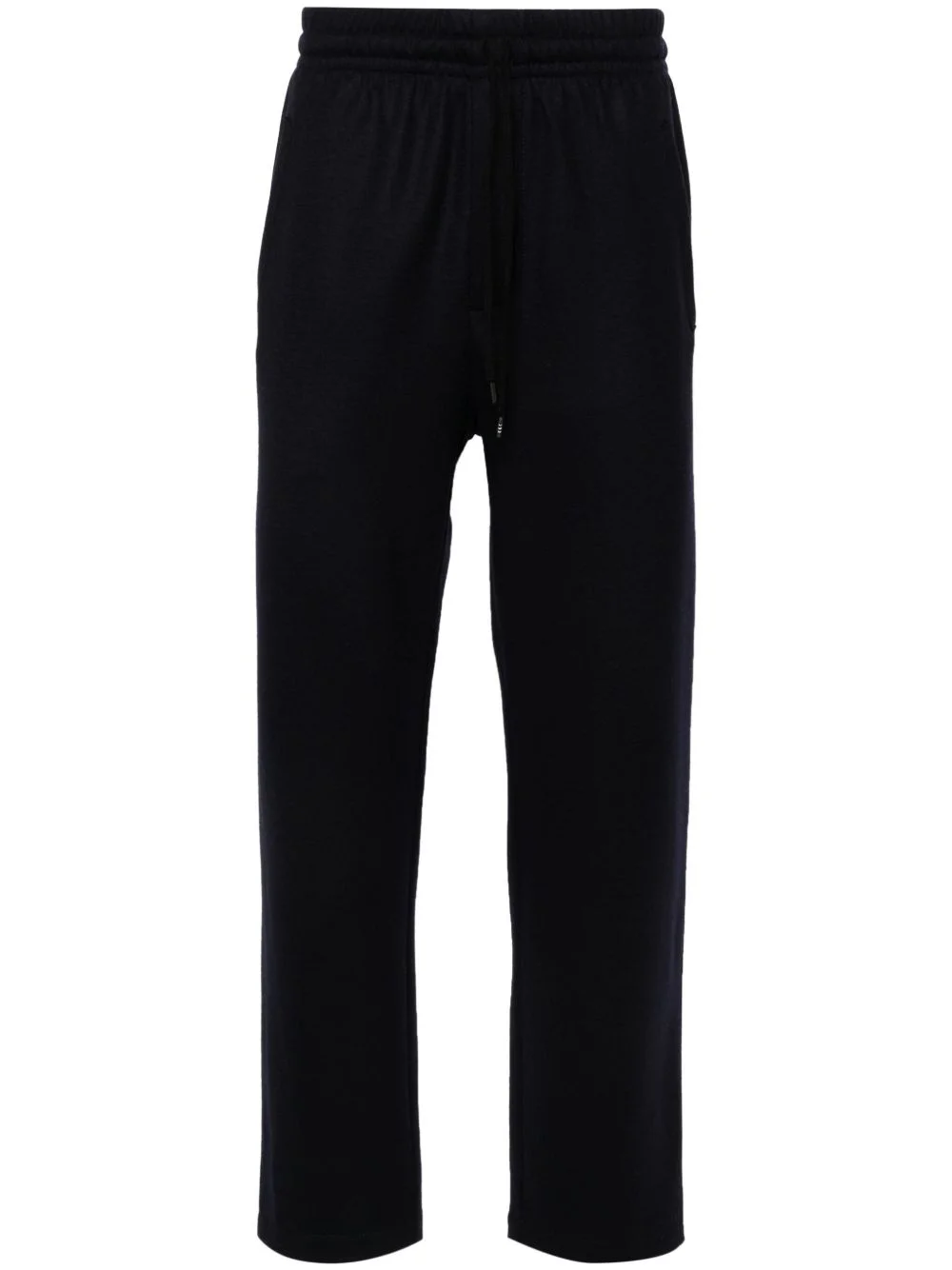 tapered track pants Highlights - Navy blue - Virgin wool - Tapered leg - Elasticated drawstring waistband - Two side welt pockets - Rear welt pocket Made in Italy Composition Virgin Wool 100% SIZE & FIT Model measurements Height 6 ft 2 in(1.88 m) Bust/Chest 36.61 in(93 cm) Hips 35.82 in(91 cm) Waist 27.95 in(71 cm) FittingInformation Designed for a slim tapered leg, offering a close fit that sits just away from the leg with a closer fit towards the ankle Adjust this piece’s waistband to your preference using the drawstring Made from a midweight non-stretch fabric, this piece offers minimal elasticity when worn This piece fits true to size – take your usual size