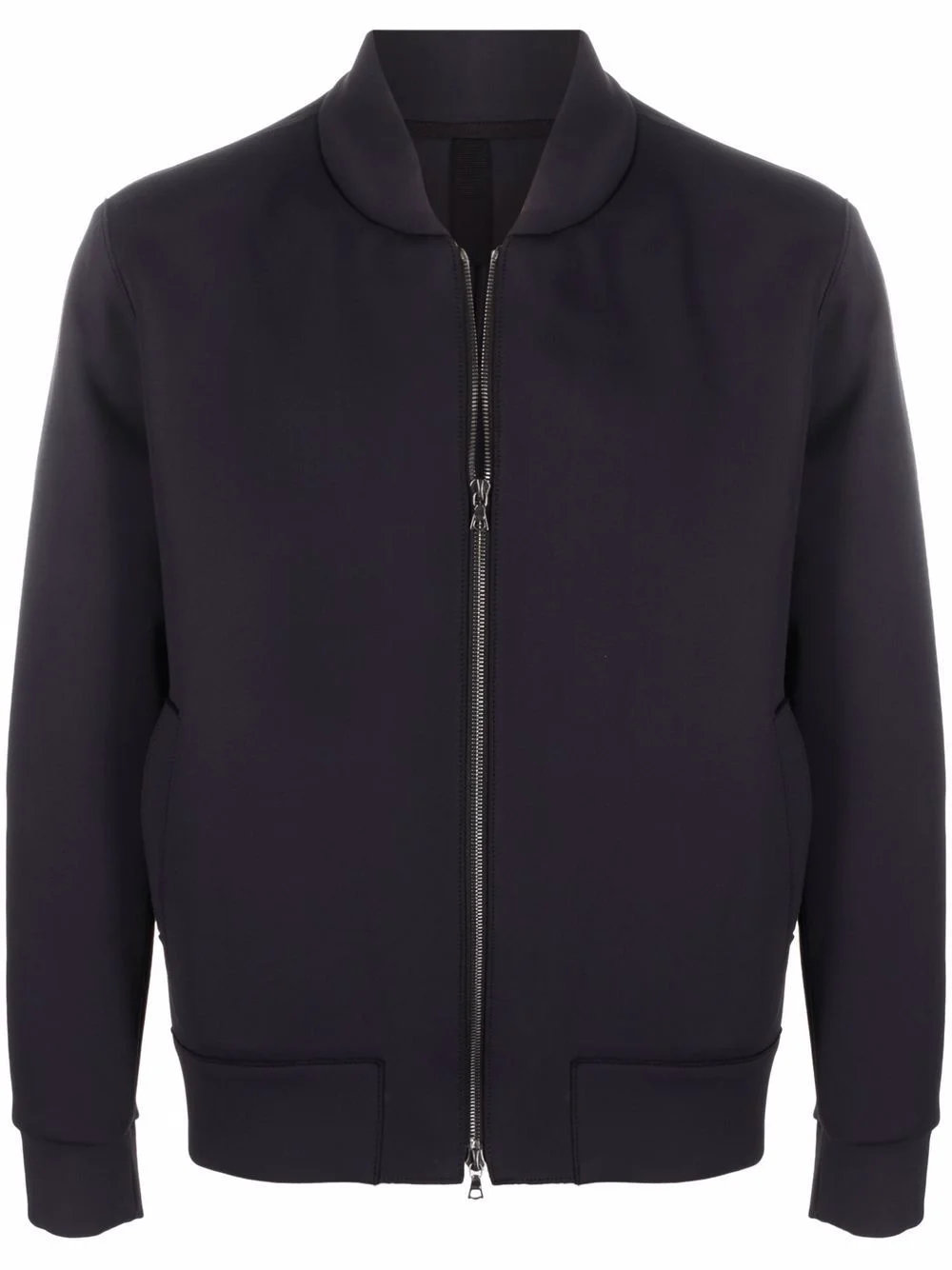 two-pocket zip-up bomber jacket Highlights - Midnight blue - Band collar - Front zip fastening - Two side slit pockets - Straight hem Made in Italy Composition Polyamide 85%, Spandex/Elastane 15% SIZE & FIT Model measurements Height 6 ft 2 in(1.88 m) Bust/Chest 36.61 in(93 cm) Hips 35.82 in(91 cm) Waist 27.95 in(71 cm)