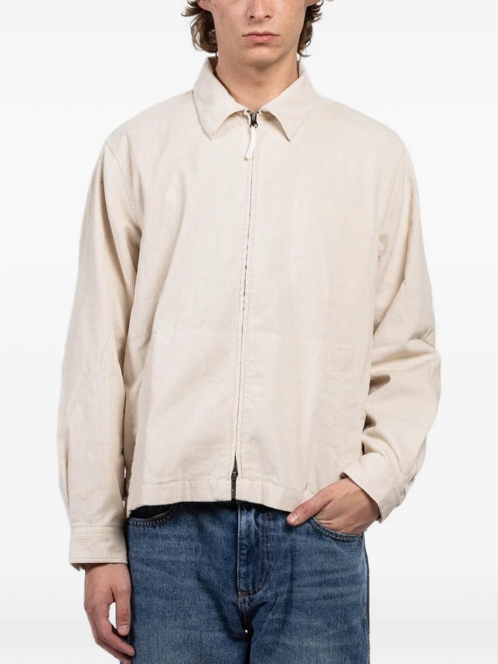 Dave corduroy jacket Highlights - Winter white - Corduroy texture - Pointed collar - Front zip fastening - Long sleeves - Buttoned cuffs - Two side pockets Imported Composition Cotton 100% Washing instructions Dry Clean Only