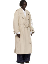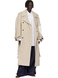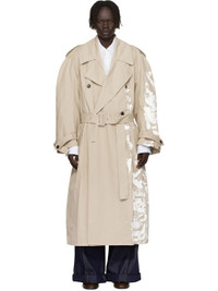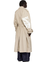 Peached cotton twill trench coat. · Paint splatter throughout · Notched lapel · Double-breasted button closure · Belt loops and welt pockets at waist · Detachable pin-buckle belt · Epaulets at raglan sleeves · Loops and button tab at cuffs · Inverted box pleat at back hem · Full satin twill lining Supplier color: Medium grey Body: 100% cotton. Lining: 100% viscose. Made in Italy 252897M184000