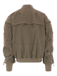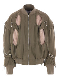 cut-out fleece-lined bomber jacket Highlights - Olive green - Cut-out details - Fleece lining - Zip fastening - Buckle straps - Ribbed hem Made in Italy Composition Outer: Polyamide 100%, Polyester 65%, Virgin Wool 35% Lining: Cotton 100% Washing instructions Read Manufacturer Guidelines