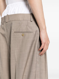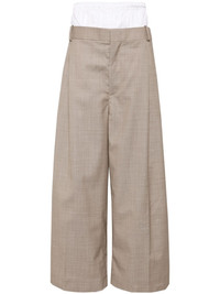 layered wide-leg trousers Highlights - Sesame beige - Wool - Pleat detailing - Layered design - Elasticated waistband - Belt loops - Concealed front fastening - Slip pockets to the sides - Two rear button-fastening jetted pockets - Wide leg Imported Composition Bottoms: Wool 100% Lining: Cotton 70%, Silk 30% Top: Cotton 100% SIZE & FIT Model measurements Height 6 ft 2 in(1.87 m) Bust/Chest 33.07 in(84 cm) Hips 35.43 in(90 cm) Waist 26.77 in(68 cm) FittingInformation Designed with a wide leg, offering a loose and roomy fit The elasticated waist allows for a comfortable fit Made from a midweight non-stretch fabric This piece fits true to size – take your usual size