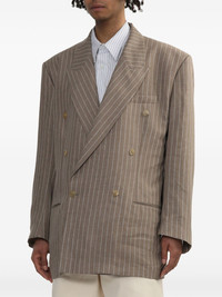 pinstriped blazer Highlights - Light brown - Double-breasted button fastening - Chest welt pocket - Two front welt pockets - Buttoned cuffs Made in Italy Composition Linen/Flax 55%, Rayon 45%