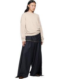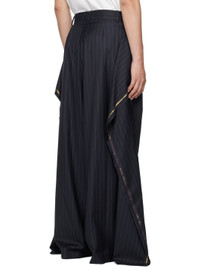 Super 110s wool flannel trousers. · Pinstripes and text woven throughout · Belt loops · Two-pocket styling · Zip fly · Draped overlay panel at waist and outseams · Darts at back Supplier color: Navy 100% wool. Made in Italy 252897M191000