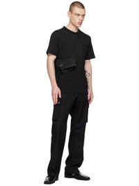 Structured buffed leather messenger bag in black. · Adjustable crossbody strap · Logo hardware at magnetic flap · Zip closure · Buffed leather lining · Silver-tone hardware · H5" x W6.25" x D2" Supplier color: Black