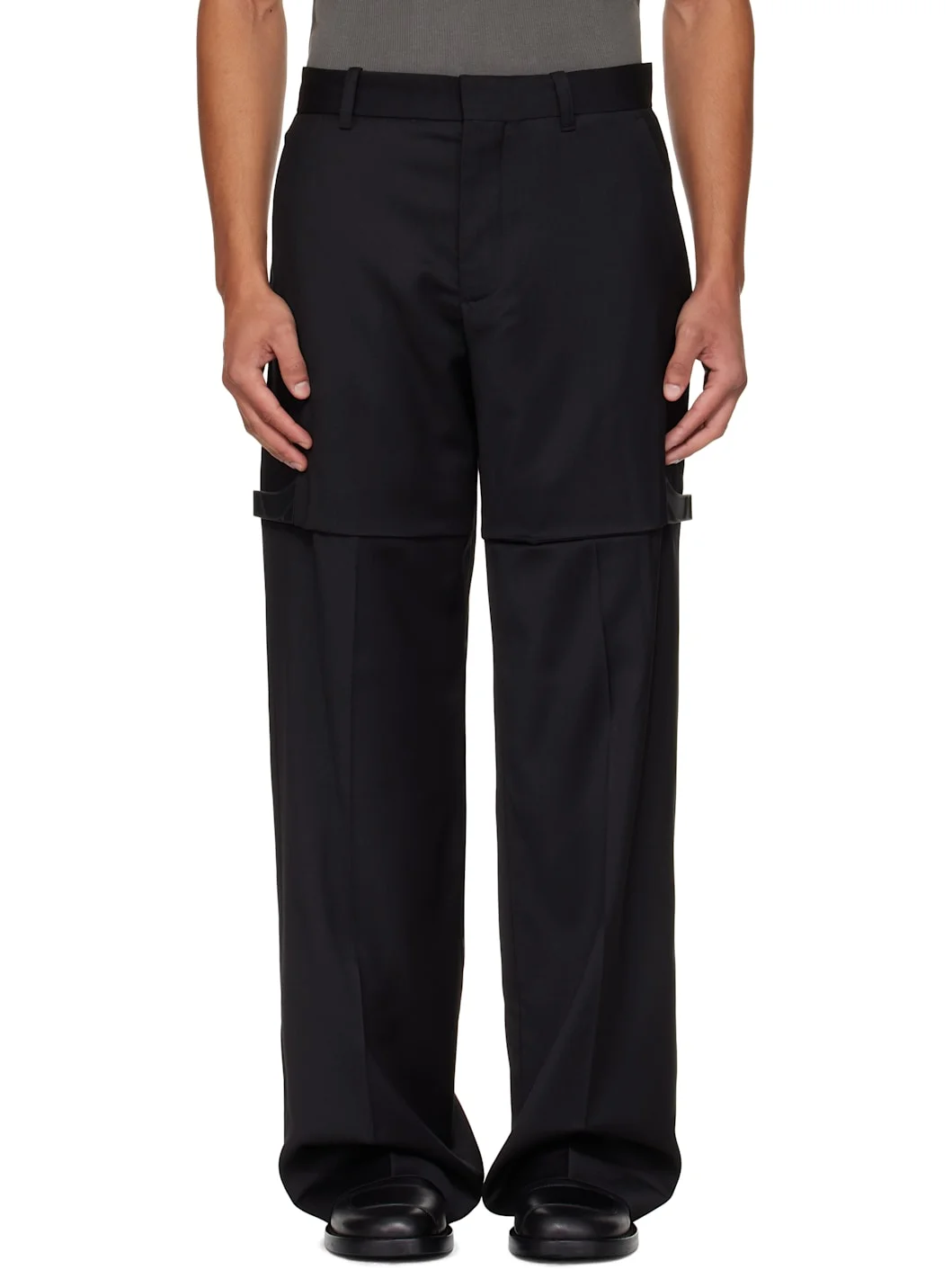 Stretch wool twill trousers. · Straight-leg · Paneled construction · Belt loops · Four-pocket styling · Zip fly · Rubber logo patch with velcro fastening overlay at legs Supplier color: Black Body: 98% wool, 2% elastane. Pocket lining: 100% recycled polyester. Made in Romania 252295M191008