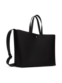 Buffed leather- and latex-blend tote in black. · Twin carry handles · Adjustable crossbody strap · Patch pocket at back face · Logo printed at patch pocket · Press-stud closure · Suede lining · H13" x W18.25" x D6" Supplier color: Black