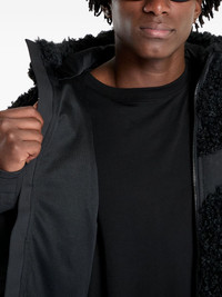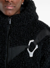 fleece hooded jacket Highlights - Black - Fleece texture - Zip fastening - Hooded neckline - Decorative strap - Silver-tone buckle Imported Composition Polyester 100% Washing instructions Read Manufacturer Guidelines