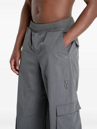 elastic-waist cargo trousers Highlights - Grey - Elasticated waistband - Side cargo pockets - Side slit pockets - Rear flap pockets Imported Composition Organic Cotton 72%, Polyamide 28% Washing instructions Read Manufacturer Guidelines