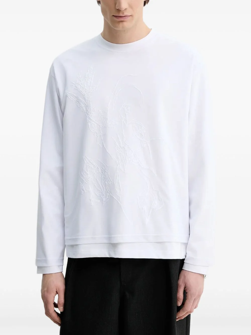 embossed floral long-sleeved T-shirt