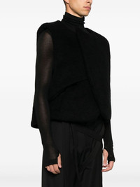 felted gilet Highlights - Black - Duck down - Felted - Padded design - Concealed magnetic fastening - Sleeveless - Two side welt pockets - Rear ring embellishment - Full lining - Rear curved hem Imported Composition Lining: Nylon 100%, Duck Down 90%, Duck Feathers 10% Outer: Polyamide 35%, Acrylic 22%, Wool 22%, Mohair 17%, Spandex/Elastane 4% SIZE & FIT Model measurements Height 6 ft 2 in(1.87 m) Bust/Chest 36.22 in(92 cm) Hips 35.43 in(90 cm) Waist 29.13 in(74 cm) FittingInformation Designed to be unstructured, offering a loose fit throughout Made from a padded stretch fabric, giving it elasticity and a flexible fit