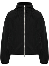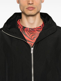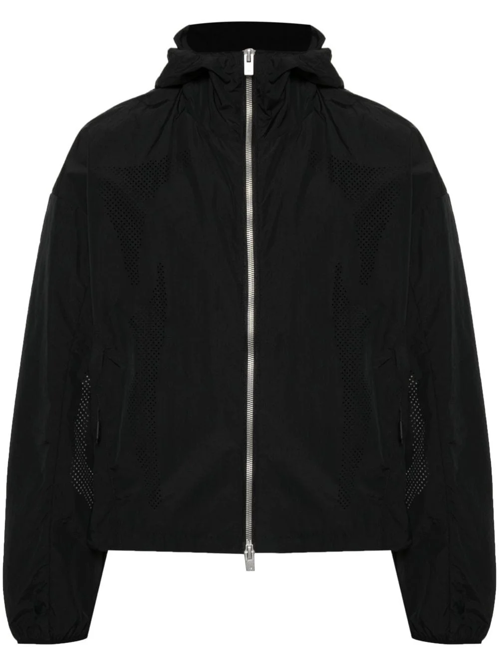 hooded lightweight windbreaker Highlights - Black - Lightweight - Perforated detailing - Slouchy hood - Front two-way zip fastening - Long sleeves - Elasticated cuffs - Drawstring hem - Two side zip-fastening pockets Imported Composition Nylon 84%, Ecovero 16% SIZE & FIT Model measurements Height 6 ft 1 in(1.86 m) Bust/Chest 37.4 in(95 cm) Hips 36.22 in(92 cm) Waist 29.52 in(75 cm) FittingInformation Designed to be unstructured, offering a loose fit throughout The internal drawstring at the hem allows for fitted preferences Made from a lightweight non-stretch fabric This piece fits true to size – take your usual size