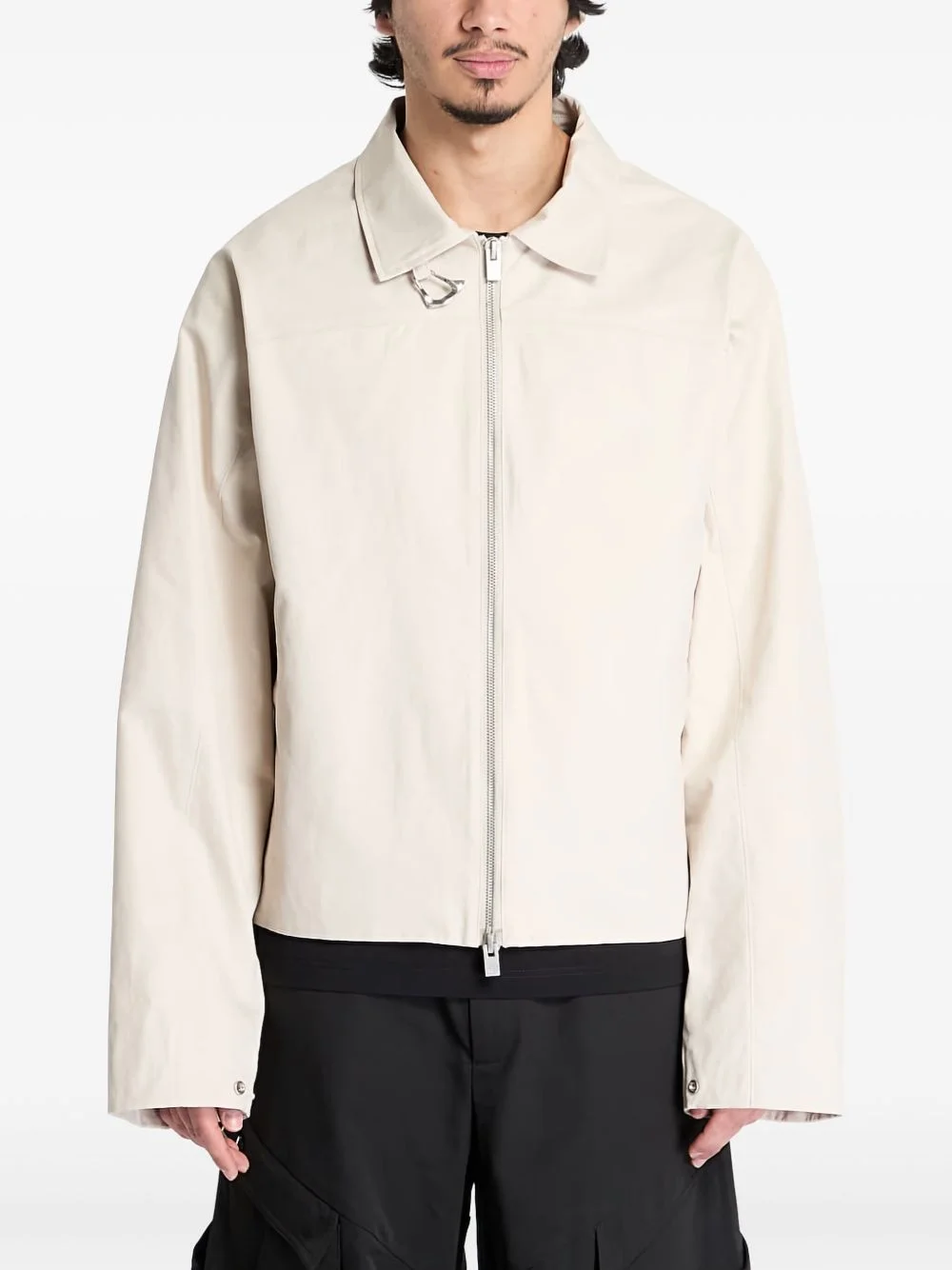 Igneous shirt jacket Highlights - Light beige - Front two-way zip fastening - Two side stud-fastening pockets - Press-stud fastening cuffs - Spread collar Imported Composition Outer: Cotton 100% Lining: Viscose 53%, Rayon 47% Washing instructions Machine Wash