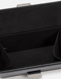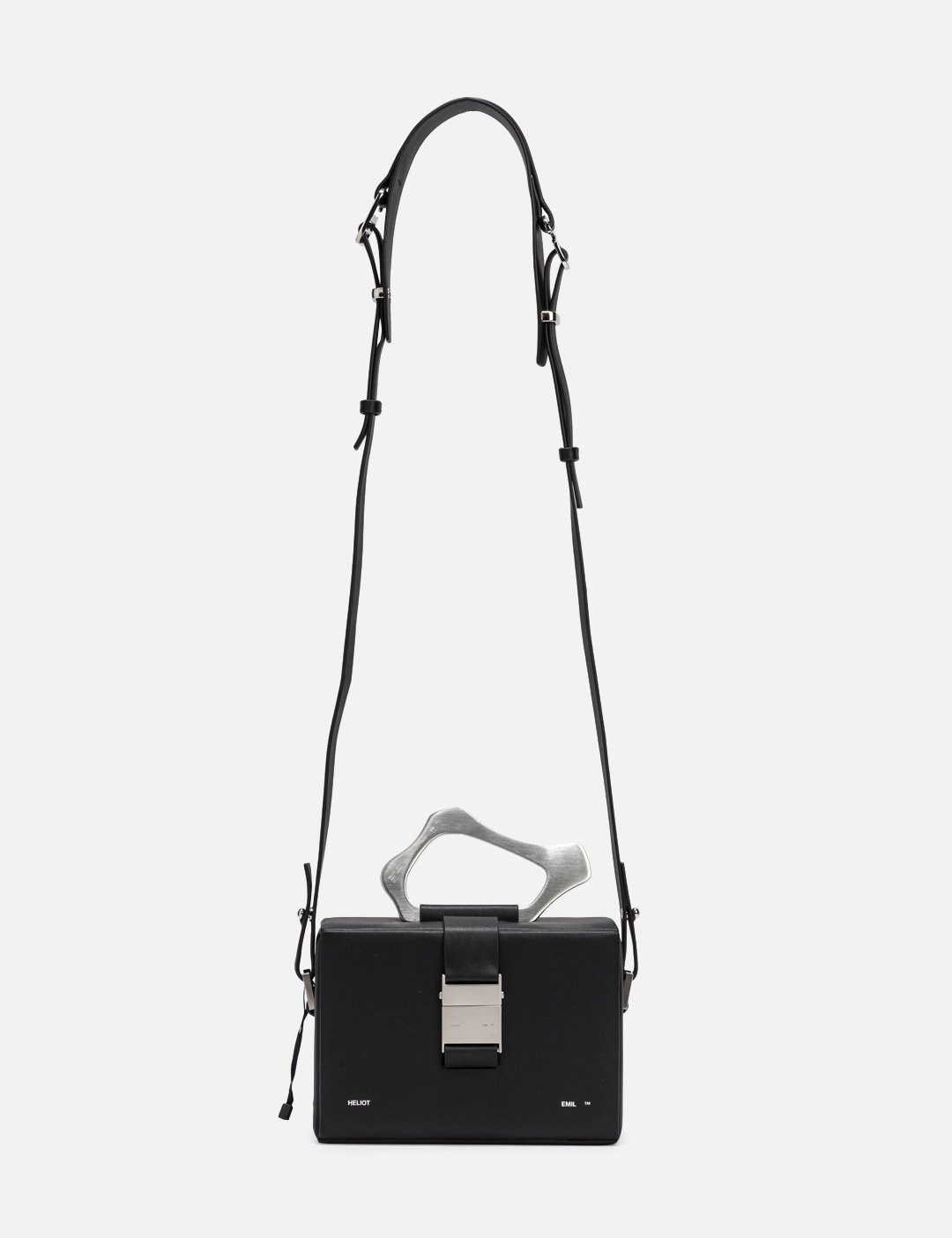 - Heliot Emil - Solely Box Bag - Box construction - Metal top handle - Adjustable and adjustable shoulder strap - Metal buckle closure - One main compartment - Branding printed on the front - Color: Black - Material: 100% Cow Leather - See more Cross-Body Bags, Bags and Accessories SIZING Approximate dimensions: - Height: 12cm - Width: 18cm - Depth: 7cm - Handle Length: 5cm - Strap Length: 46cm