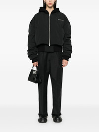 Pneumatic bomber jacket Highlights - Black - Taffeta - Padded design - Front two-way zip fastening - Touch-strap fastening - Baseball collar - Classic hood - Drop shoulder - Long sleeves - Ribbed cuffs and hem - Logo plaque at the chest - Two side welt pockets - Cropped - When buying this unisex item, keep in mind that it is graded in standard men's sizing. Imported Composition Outer: Polyester 100% Lining: Polyester 100%, Cotton 100% SIZE & FIT Model measurements Height 5 ft 10 in(1.78 m) Bust/Chest 33.85 in(86 cm) Hips 36.61 in(93 cm) Waist 26.77 in(68 cm) FittingInformation This unisex piece is designed for a loose fit whether you usually select women's or men's sizes The ribbed hem offers a close, comfortable fit Made from a padded non-stretch fabric, giving it no natural elasticity