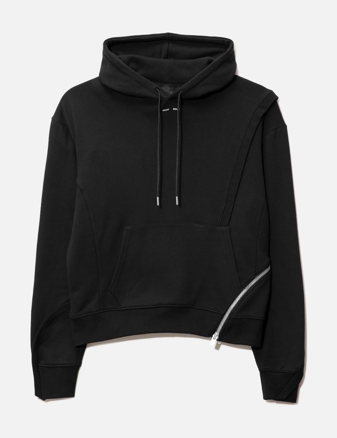 - Heliot Emil - Placid Hoodie - Slim fit - Drawstring hood - Ribbed cuffs and hem - Kangaroo pocket - Branding on collar - Zip closure all over back - Straight hem - Color: Black - Material: 100% Organic Cotton - See more Hoodies and Clothing SIZING - Model wears size L - Model measures: Height 190cm, Chest 34”/84cm, Waist 28”/70cm, Hip 35”/90cm