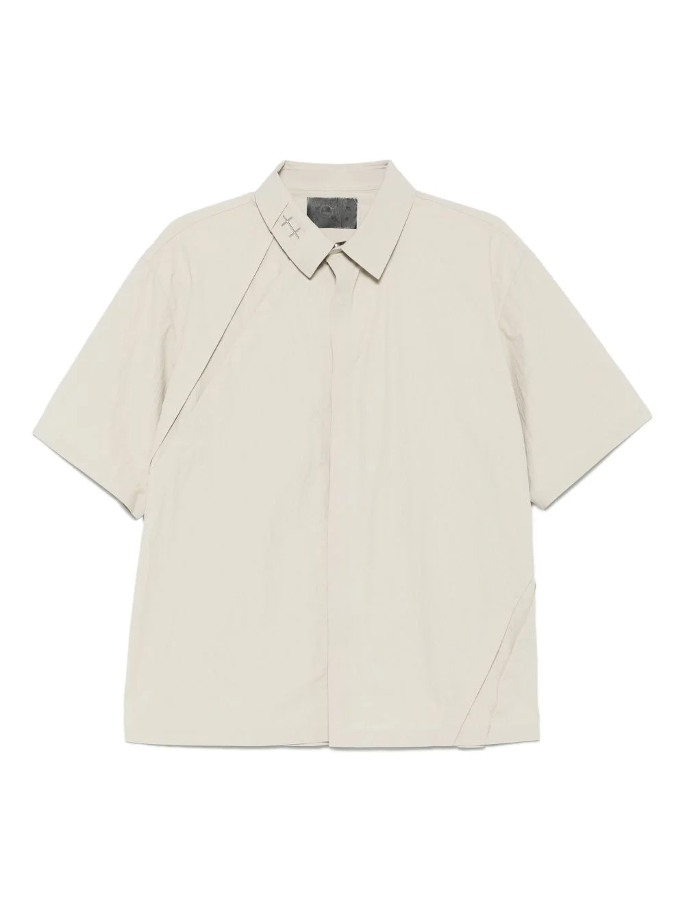 short-sleeve panelled shirt Highlights - Stone - Short sleeves - Concealed front fastening - Classic collar - Panelled design - Stitch detail Imported Composition Recycled Nylon 100% SIZE & FIT Model measurements Height 6 ft 2 in(1.87 m) Bust/Chest 37.79 in(96 cm) Hips 37.79 in(96 cm) Waist 30.31 in(77 cm) Washing instructions Machine Wash