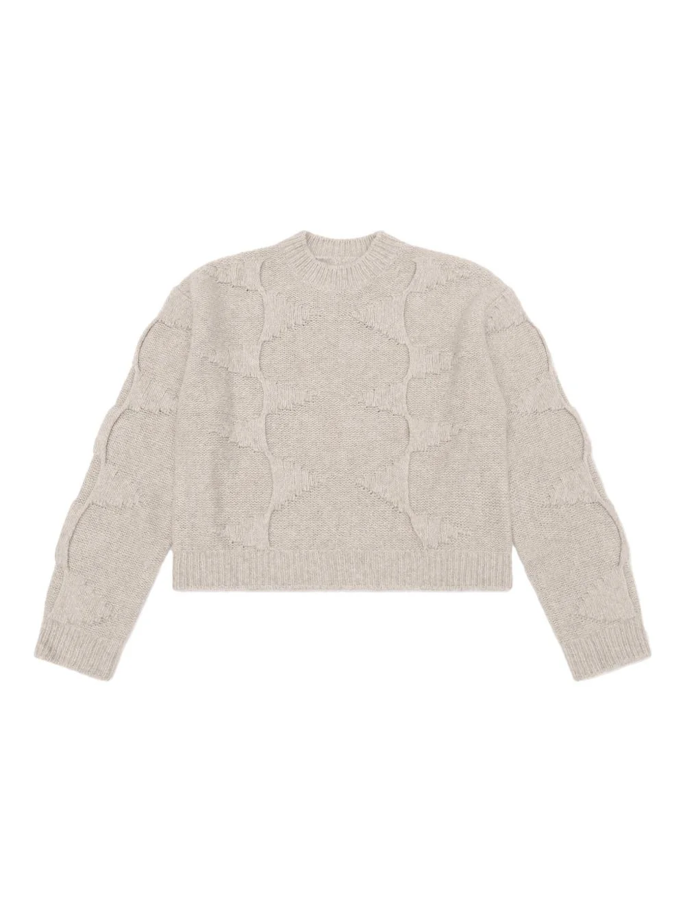 spiral-knit wool sweater Highlights - Beige - Wool cashmere blend - Textured pattern - Puffed sleeves - Central seam detail Imported Composition Merino 75%, Cashmere 25% Washing instructions Read Manufacturer Guidelines