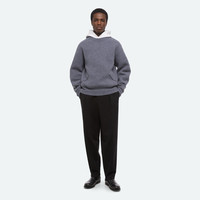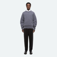Midweight crewneck sweater with contrasting shoulder detail. Pintucked seams wrap around the body, adding a softly curved shape to the slouchy fit. BLACK: Fits true to size. Model is 6’2” and wears size M. GREY: Fits true to size. Model is 6’1” and wears size M. DETAILS - Crewneck - Contrast stitch on shoulders - Ribbed hem and cuffs - Leather logo patch at back - Relaxed fit - P07HM702 MATERIALS & CARE - Composition: 100% merino wool - Dry clean with any solvent except trichloroethylene. - Fabric Production Country/Region: China - Dyeing Country/Region: (of fabric) China - Spinning: (of fabric) China