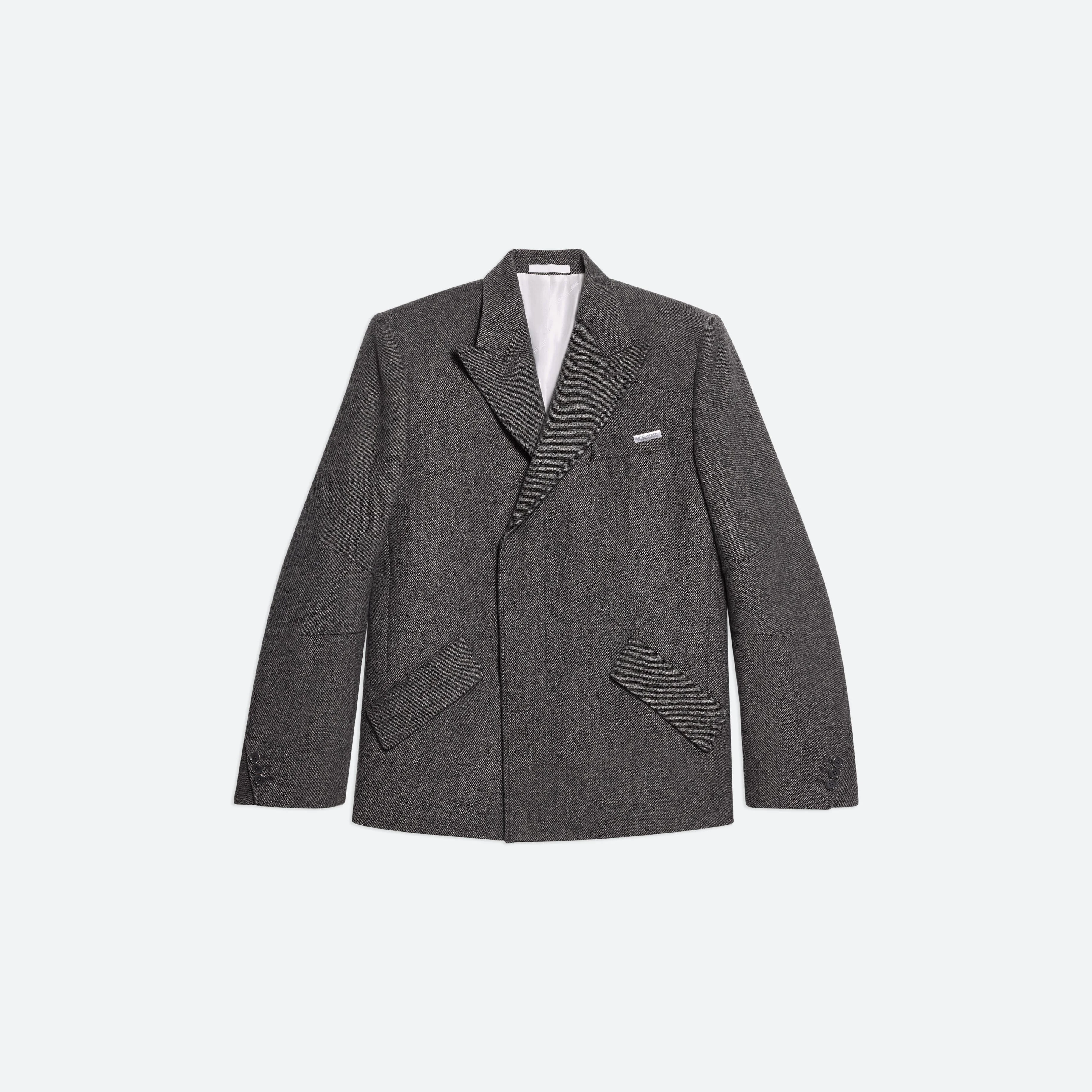 Double-breasted blazer in a substantial Italian wool twill, sculpted by seams that wrap around the body to create a softly curved silhouette. Relaxed fit with peak lapels, flap pockets, hidden waist pockets, and concealed button closures. Fits true to size. Model is 6’2” and wears size M DETAILS - Peak lapels - Flap pockets - Waist pockets with invisible zippers - Interior welt pocket - Vent at back - Relaxed fit - Fully lined - Metal logo clip - O07HM101 MATERIALS & CARE - Composition: 70% Wool, 30% Polyamide - Machine wash cold inside out with like colors in mesh bag. Do not bleach. Do not tumble dry. Lay flat to dry. Cool iron if needed. Do not dry clean. - Finished Garment Manufacturing Country/Region: China - Fabric Production Country/Region: Italy - Weaving Country/Region: (of fabric) Italy - Dyeing Country/Region: (of fabric) Italy - Finishing Country/Region: (of fabric) Italy