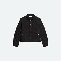 Denim jacket with classic details and logo shank buttons. Wrapped seams create a softly curved silhouette. Fits true to size. Model is 6’1” and wears size M. DETAILS - Pointed collar - Metal button front closure - Front flap pockets with button closure - Metal button cuffs - Adjustable button tabs at hem - Leather logo patch at back - P07DM101 MATERIALS & CARE - Composition: 100% cotton - Machine wash cold, gentle cycle, with like colors. Wash inside-out. Do not bleach. Hang to dry in shade. Cool iron if needed. Dry clean with any solvent except trichloroethylene. Do not tumble dry. - Fabric Production Country/Region: Italy - Weaving Country/Region: (of fabric) Italy - Dyeing Country/Region: (of fabric) Italy - Finishing Country/Region: (of fabric) Italy