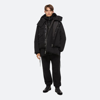 Layered puffer jacket with funnel neck and hood. Wear the removable vest on its own, opening the side zippers for lighter protection. Utility pockets and functional details pulled from aviation suits and naval gear create endless ways to layer and style. Winter-ready with a naturally water-resistant and windproof woven cotton shell, down quilting, and an oversized fit. Fits true to size. Model is 6’2” and wears size M DETAILS - Two pieces can be worn separately or together - Front zip closure with storm guard - Hood with drawstring - Funnel neck with velcro closure - Lace-up detailing at sides - Windproof and water resistant shell - Quilted throughout with down fill - O07HM402 MATERIALS & CARE - Composition: 100% Cotton - Professional dry clean only - Finished Garment Manufacturing Country/Region: China - Fabric Production Country/Region: Italy - Weaving Country/Region: (of fabric) Turkey - Dyeing Country/Region: (of fabric) Italy - Finishing Country/Region: (of fabric) Italy