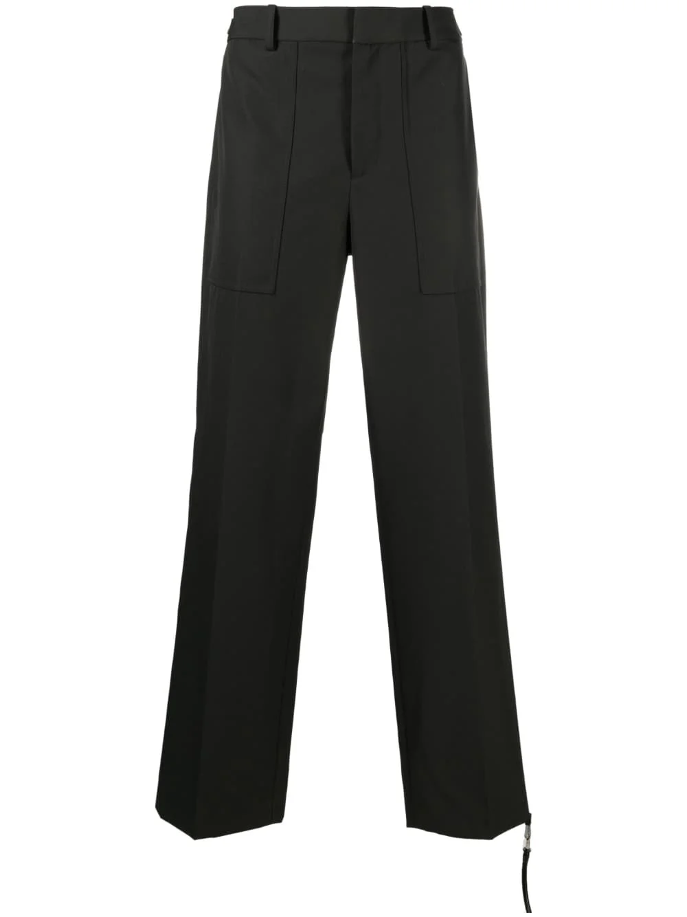 buckle-detail cotton trousers Highlights - Olive green - Cotton/wool blend - Decorative buckle detail - Belt loops - Concealed front fastening - Two side slit pockets - Rear flap pocket - Rear welt pocket Imported Composition Outer: Wool 50%, Polyester 50% Lining: Cotton 100% SIZE & FIT Model measurements Height 6 ft 2 in(1.87 m) Bust/Chest 38.18 in(97 cm) Hips 36.61 in(93 cm) Waist 29.13 in(74 cm) FittingInformation Designed for a straight-leg, allowing for an unrestricted and comfortable fit over the leg The adjustable tabs allow for fitted preferences Made from a midweight non-stretch fabric This piece fits true to size – take your usual size Washing instructions Dry Clean Only