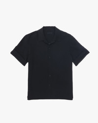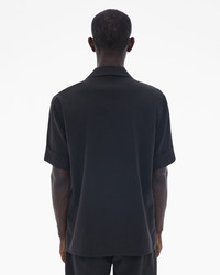 The Helmut Lang Camp Shirt is a straight-cut style in cotton poplin with a spread camp collar, button front closures, and rolled button tab short sleeves with an embroidered HL logo. DETAILS - 60% Rayon, 24% Cotton, 12% Polyester, 4% Linen - Camp collar - Short sleeves - Button front closures - Button roll tab details - Embroidered HL logo - Imported - N04HM503 CARE - Professional dry clean only FIT - Fits true to size - Ibby is 6’2” and is wearing size M