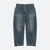 Barrel-leg jeans in vintage wash with released hem. Darts at the knee and ankle sculpt a round, curved leg shape. Fits true to size. Model is 6’2” and wears size 32. DETAILS - Mid-rise - Barrel-shaped leg - Released hem detail with raw edge effect - Zip fly with button closure - Classic five-pocket style - Black leather logo patch - Cropped ankle length - 27” inseam and 18 ½” leg opening - P05DM201 MATERIALS & CARE - Composition: 100% cotton - Machine wash cold on gentle cycle with like colors, inside-out. Do not bleach. Hang to dry in shade. Cool iron if needed. Dry clean with any solvent except trichloroethylene. - Finished Garment Manufacturing Country/Region: China - Fabric Production Country/Region: Italy - Weaving Country/Region: (of fabric) Italy - Dyeing Country/Region: (of fabric) Italy - Finishing Country/Region: (of fabric) Italy