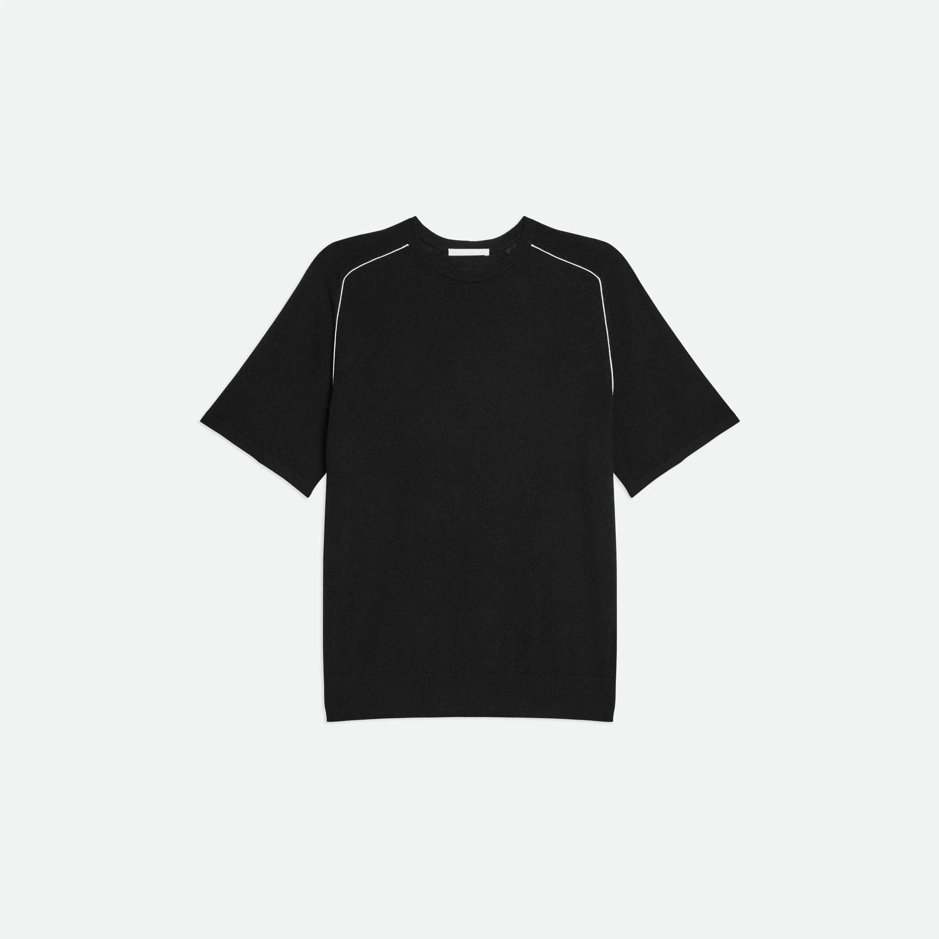 Knit wool tee with contrast piping. GREY: Fits true to size. Model is 6’2” and wears size M. BLACK: Fits true to size. Model is 6’1” and wears size M. DETAILS - Crewneck - Contrast piping at sleeves and side seams - Leather logo patch at back - Ribbed hem - Relaxed fit - P06HM705 MATERIALS & CARE - Composition: 100% wool - Dry clean with any solvent except trichloroethylene. - Fabric Production Country/Region: China - Dyeing Country/Region: (of fabric) China - Finishing Country/Region: (of fabric) China - Spinning: (of fabric) China