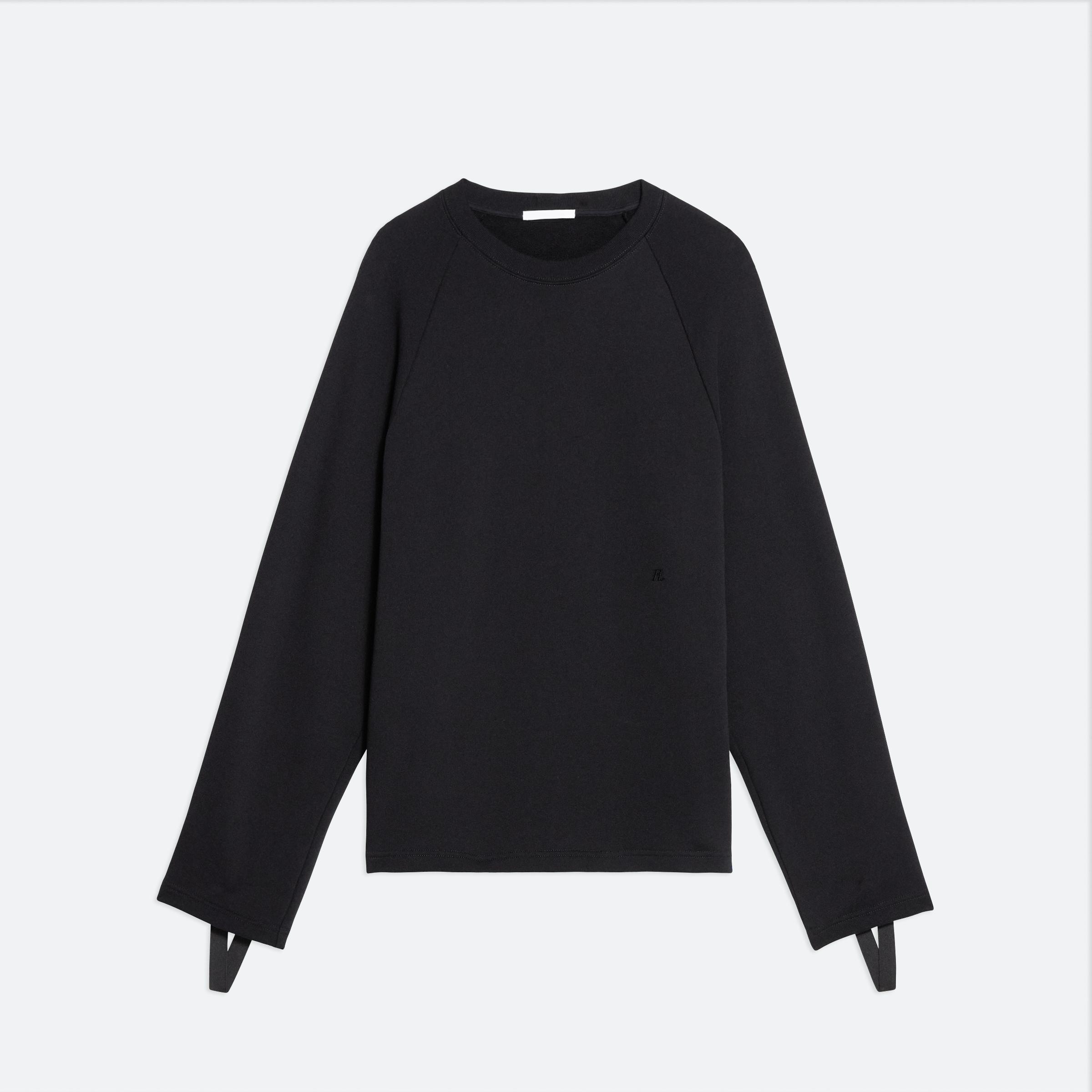French terry sweatshirt. · Rib knit crewneck · Raglan sleeves · Detachable webbing strap at cuffs Supplier color: Black