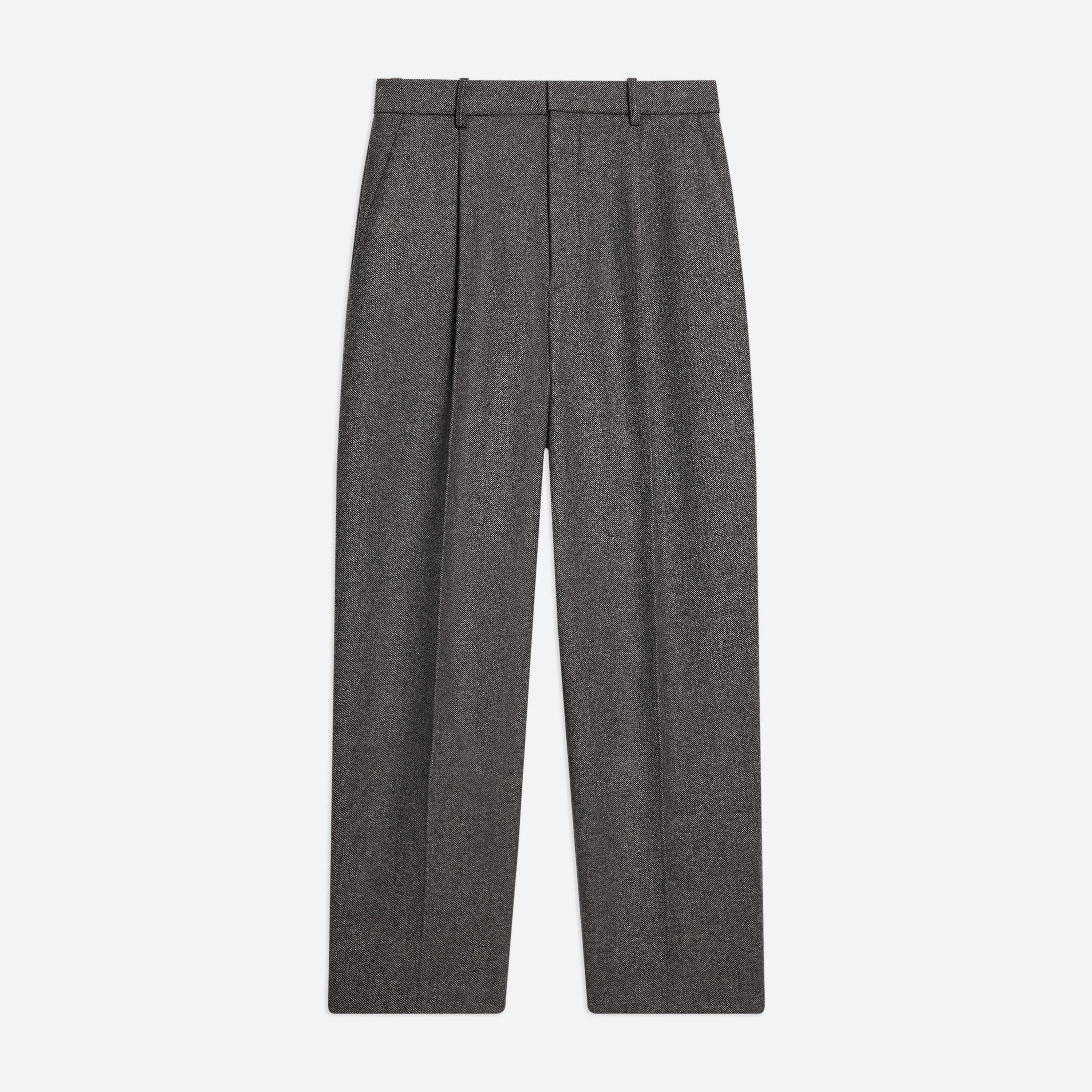 Cropped trousers in soft wool twill. Front pleats and a relaxed rise create a fuller leg that tapers at the ankle for a slight carrot shape. Fits true to size. Model is 6’2” and wears size 32 DETAILS - Belt loops - Pleats at front - Zip fly with hook and bar closure - Side slip pockets - Back welt pockets with metal logo clip - Slight cropped length - Relaxed fit with high rise - Half lined - O07HM202 MATERIALS & CARE - Composition: 70% Wool, 30% Polyamide - Finished Garment Manufacturing Country/Region: China - Fabric Production Country/Region: Italy - Weaving Country/Region: (of fabric) Italy - Dyeing Country/Region: (of fabric) Italy - Finishing Country/Region: (of fabric) Italy