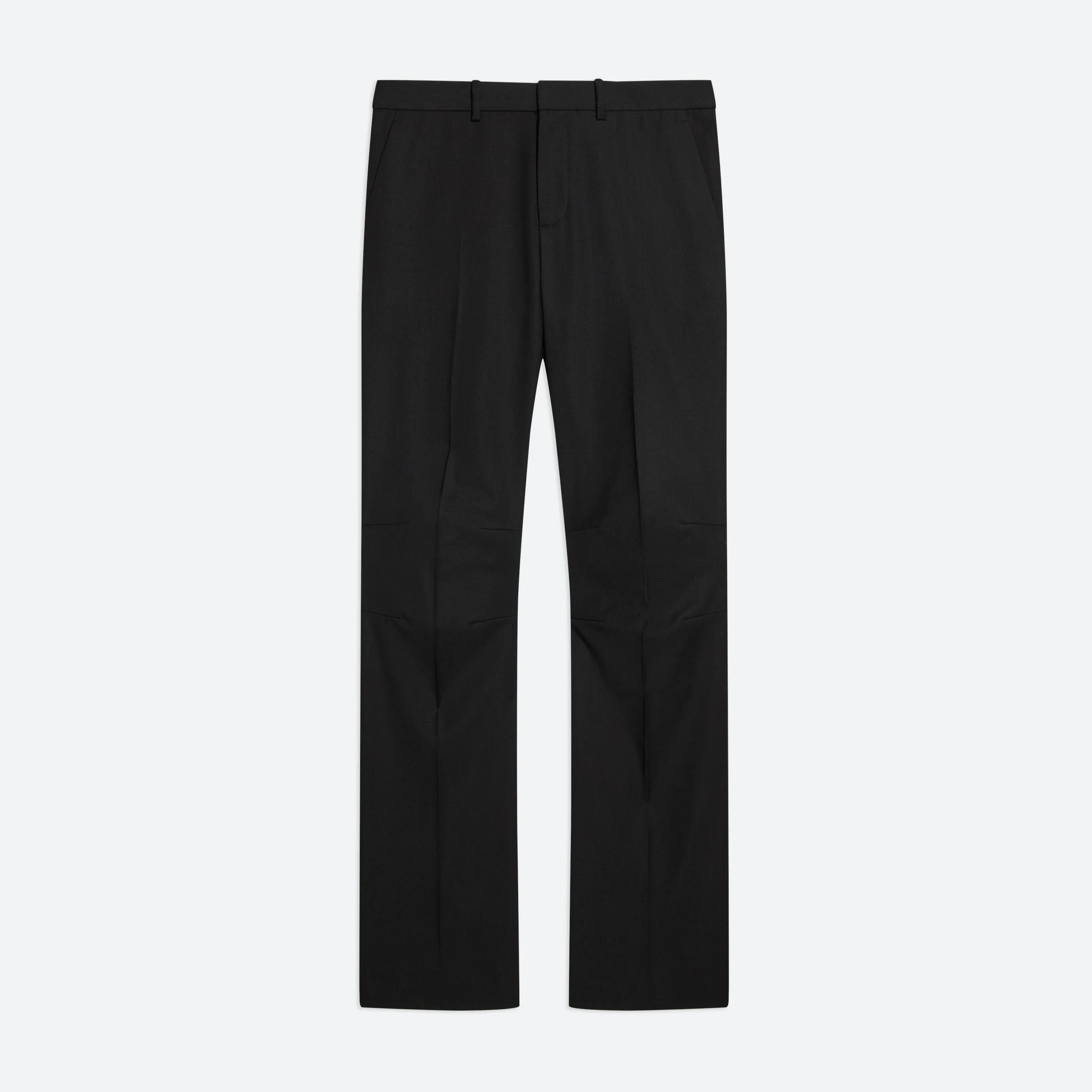 Tailored car trouser in virgin Italian wool suiting. Directional seaming creates a softly curved leg shape. Cut with a relaxed fit. Fits true to size. Model is 6’2” and wears size 32 DETAILS - Belt loops - Flat front - Zip fly with hook and bar closure - Side slip pockets - Zip fly and hook-and-eye closure - Metal logo clip on back pocket - Relaxed fit - O06HM202 MATERIALS & CARE - Composition: 100% Virgin Wool - Machine wash cold inside out with like colors. Do not bleach. Do not tumble dry. Lay flat to dry. Cool iron if needed. Do not dry clean. - Finished Garment Manufacturing Country/Region: China - Fabric Production Country/Region: Italy - Weaving Country/Region: (of fabric) Italy - Dyeing Country/Region: (of fabric) Italy - Finishing Country/Region: (of fabric) Italy
