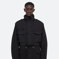 Convertible field jacket in lightweight cotton twill. Open the concealed zipper at the waist to transform the jacket into a cropped fit. Finished with utility details including a concealed hood and garment-dyed for a soft, lived-in feel. Fits true to size. Model is 6'3" and wears size M. DETAILS - Transforms from full length to cropped - Concealed button front closure with zipper - Collar zips open to reveal encased hood - Epaulets - Button closure at neck and cuffs - Tonal cotton tape detail at chest - Drawcord at waist controls the fit of the skirt - Interior straps to control volume of jacket - Tonal embroidered logo on back - Unlined - P03HM102 MATERIALS & CARE - Composition: 96% cotton, 4% elastane - Machine wash cold, gentle cycle, with similar colors, do not bleach, lay flat to dry in shade, do not tumble dry, cool iron if needed, dry clean with any solvent except trichloroethylene - Finished Garment Manufacturing Country/Region: China - Fabric Production Country/Region: Italy - Weaving Country/Region: (of fabric) Pakistan - Dyeing Country/Region: (of fabric) Italy - Finishing Country/Region: (of fabric) Italy