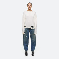 Ribbed sweater in bouncy Italian cotton knit. A roomy fit, dropped shoulder, and distressed detailing create the feeling of a long-time favorite. This garment was designed with a unisex fit so you can express your unique style. Fits true to size. Male model is 6’2” and is wearing size M Female model is 5’9” and is wearing size S DETAILS - Crewneck - Cotton rib-effect knit - Ribbed cuffs and hem - Distressed detail at neck, cuffs, and hem - Boxy, oversized fit - O04HM799 MATERIALS & CARE - Composition: 99% Cotton, 1% Other Fibers - Dry clean using any solvent except trichloroethylene. - Finished Garment Manufacturing Country/Region: China - Fabric Production Country/Region: Italy - Dyeing Country/Region: (of fabric) Italy - Finishing Country/Region: (of fabric) Italy - Spinning: (of fabric) Italy