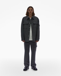 The Helmut Lang Shirt Jacket is a utilitarian style in mélange wool nylon with a pointed collar, snap front closures and snap pockets. DETAILS - 90% Wool, 10% Nylon - Point collar - Snap front closures and pockets - Imported - M07HM501 CARE - Professional dry clean only FIT - Fits true to size - Erin is 6'1" and wearing size 32