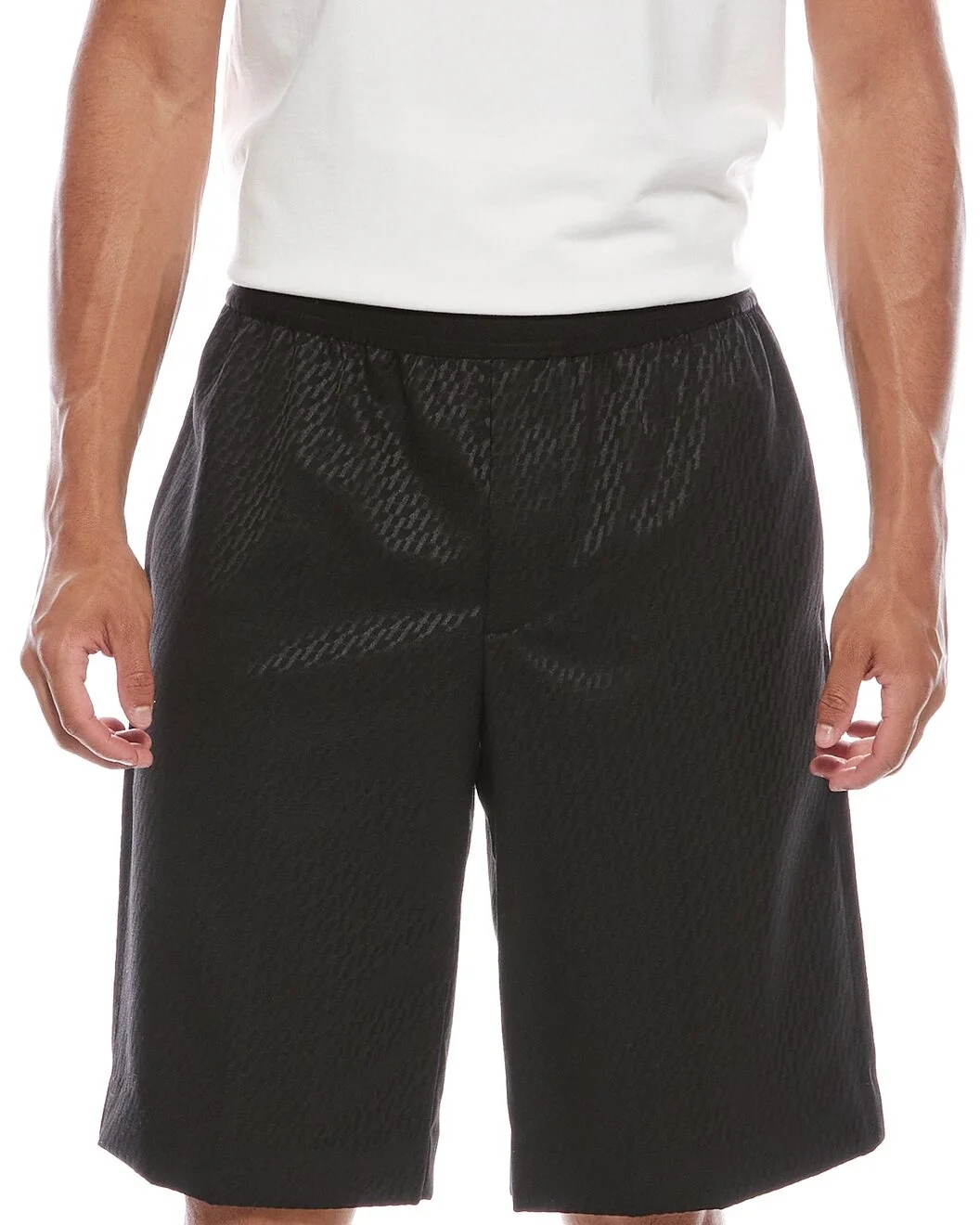 - About the brand: Easy and edgy wardrobe essentials. - Car Short in black with elastic waist, and four-pocket styling - Inseam approximately 12in; 12in rise - Model is 6'1 and is wearing a size 32. Measurements may vary slightly by size. - Slip-on styling - 73% polyester, 25% wool, 2% elastane - Pockets: 100% viscose - Dry clean only - Imported - The Men's Size Guide - Our products are 100% genuine. In some cases we purchase merchandise from trusted independent suppliers and not directly from the brand owner. In all cases we stand by the authenticity of every product sold on our site.