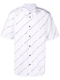 logo-print cotton shirt white/black cotton all-over logo print spread collar front button fastening chest patch pocket short sleeves straight hem Imported Composition Cotton 100% SIZE & FIT Model measurements Height 6 ft 1 in(1.85 m) Bust/Chest 37.79 in(96 cm) Hips 37.4 in(95 cm) Waist 30.7 in(78 cm) Measurement CHEST 42.51 in(108 cm) SLEEVE LENGTH 10.23 in(26 cm) Shoulder Width 18.5 in(47 cm) FittingInformation This piece fits true to size. We recommend you get your regular size Cut for a loose fit Made with a mid-weight non-stretch fabric Washing instructions Dry Clean Only