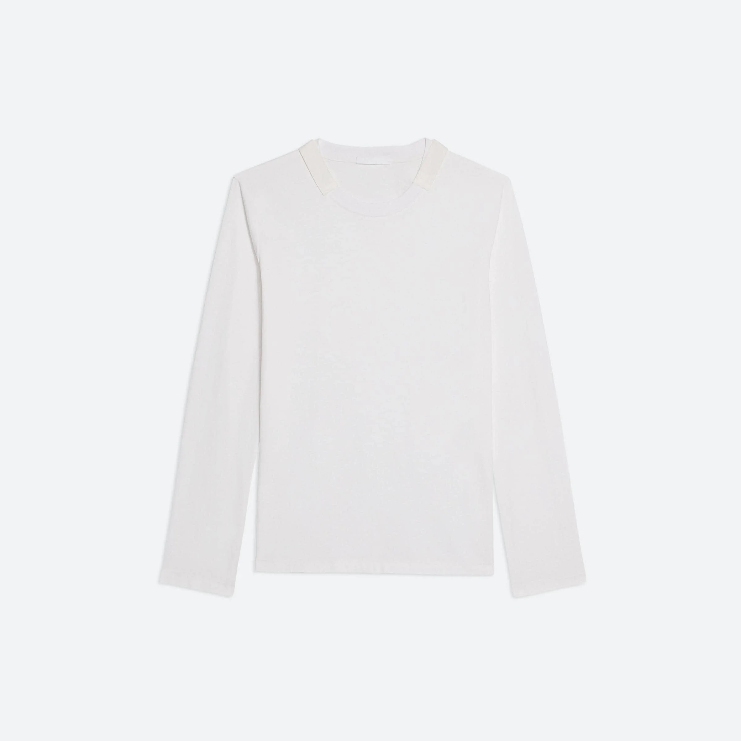 Lightweight crewneck tee with long sleeves and seatbelt tape details at shoulder. Male Model is 6’2” and is wearing size M DETAILS - Crewneck - Long sleeves - Shoulder seatbelt details - Female model is wearing men's M for a relaxed fit - O01HM504 MATERIALS & CARE - Composition: 100% Cotton - Machine wash cold with like colors - Do not bleach or dry clean - Tumble dry low - Iron inside out with a warm iron if needed - Finished Garment Manufacturing Country/Region: Portugal - Fabric Production Country/Region: Portugal - Weaving Country/Region: (of fabric) Portugal - Dyeing Country/Region: (of fabric) Portugal - Finishing Country/Region: (of fabric) Portugal